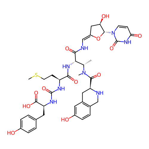 | SMILES | C[C@@H]([C@@H](C(=O)N/C=C\1/C[C@H]([C@@H](O1)N2C=CC(=O)NC2=O)O)NC(=O)[C@H](CCSC)NC(=O)N[C@@H](CC3=CC=C(C=C3)O)C(=O)O)N(C)C(=O)[C@@H]4CC5=C(CN4)C=CC(=C5)O |