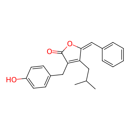 | SMILES | CC(C)CC\1=C(C(=O)O/C1=C/C2=CC=CC=C2)CC3=CC=C(C=C3)O |