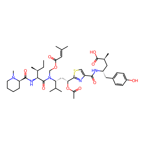 | InChI | InChI=1S/C43H63N5O10S/c1-10-27(6)38(46-40(53)34-13-11-12-18-47(34)9)42(54)48(24-57-37(51)19-25(2)3)35(26(4)5)22-36(58-29(8)49)41-45-33(23-59-41)39(52)44-31(20-28(7)43(55)56)21-30-14-16-32(50)17-15-30/h14-17,19,23,26-28,31,34-36,38,50H,10-13,18,20-22,24H2,1-9H3,(H,44,52)(H,46,53)(H,55,56)/t27-,28-,31+,34+,35+,36+,38-/m0/s1 |