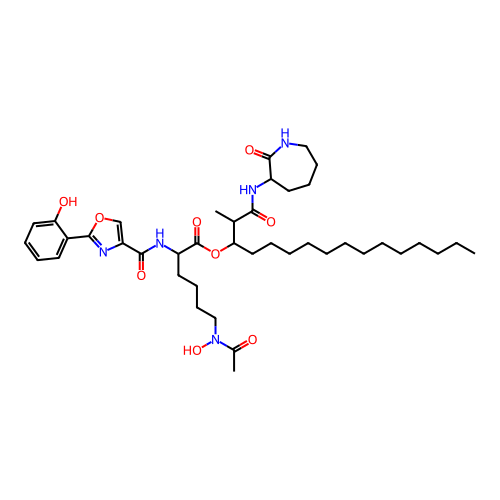 | SMILES | CCCCCCCCCCCCCC(C(C)C(=O)NC1CCCCNC1=O)OC(=O)C(CCCCN(C(=O)C)O)NC(=O)C2=COC(=N2)C3=CC=CC=C3O |