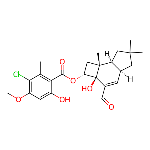 | SMILES | CC1=C(C(=CC(=C1Cl)OC)O)C(=O)O[C@@H]2C[C@]3([C@@]2(C(=C[C@H]4[C@@H]3CC(C4)(C)C)C=O)O)C |