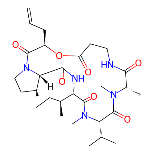 | SMILES | CC[C@H](C)[C@H]1C(=O)N([C@H](C(=O)N([C@H](C(=O)NCCC(=O)O[C@@H](C(=O)N2CC[C@@H]([C@H]2C(=O)N1)C)CC=C)C)C)C(C)C)C |