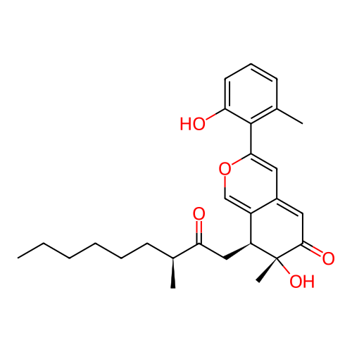 | SMILES | CCCCCC[C@H](C)C(=O)C[C@H]1C2=COC(=CC2=CC(=O)[C@]1(C)O)C3=C(C=CC=C3O)C |