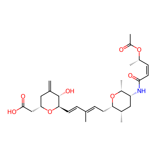 | SMILES | C[C@H]1C[C@H]([C@H](O[C@H]1C/C=C(\C)/C=C/[C@@H]2[C@H](C(=C)C[C@H](O2)CC(=O)O)O)C)NC(=O)/C=C\[C@H](C)OC(=O)C |