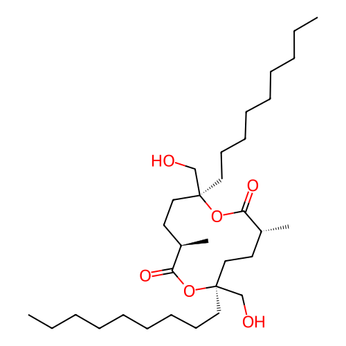 | SMILES | CCCCCCCCC[C@]1(CC[C@H](C(=O)O[C@](CC[C@H](C(=O)O1)C)(CCCCCCCCC)CO)C)CO |
