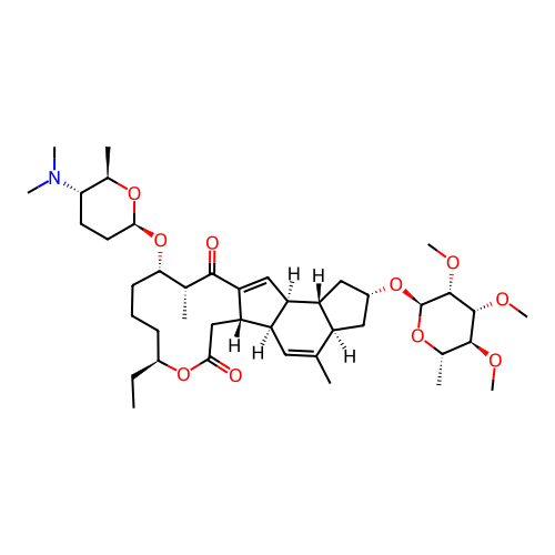 | SMILES | CC[C@H]1CCC[C@H](O[C@H]2CC[C@H](N(C)C)[C@@H](C)O2)[C@@H](C)C(=O)C2=C[C@@H]3[C@@H](C=C(C)[C@@H]4C[C@@H](O[C@@H]5O[C@@H](C)[C@H](OC)[C@@H](OC)[C@H]5OC)C[C@@H]34)[C@@H]2CC(=O)O1 |