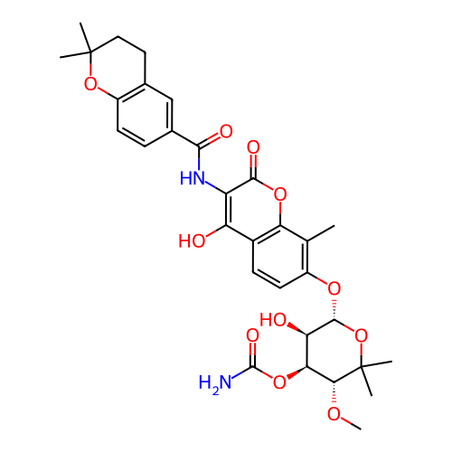 | SMILES | CC1=C(C=CC2=C1OC(=O)C(=C2O)NC(=O)C3=CC4=C(C=C3)OC(CC4)(C)C)O[C@H]5[C@@H]([C@@H]([C@H](C(O5)(C)C)OC)OC(=O)N)O |