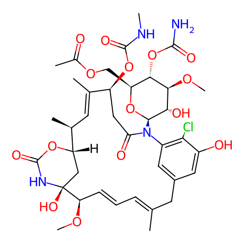 | InChI | InChI=1S/C38H51ClN4O15/c1-18-9-8-10-28(52-6)38(51)16-26(57-37(50)42-38)20(3)12-19(2)25(56-36(49)41-5)15-29(46)43(23-13-22(11-18)14-24(45)30(23)39)34-31(47)33(53-7)32(58-35(40)48)27(55-34)17-54-21(4)44/h8-10,12-14,20,25-28,31-34,45,47,51H,11,15-17H2,1-7H3,(H2,40,48)(H,41,49)(H,42,50)/b10-8+,18-9+,19-12+/t20-,25-,26-,27-,28+,31-,32-,33-,34-,38-/m0/s1 |