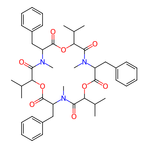 | SMILES | CC(C)C1C(=O)N(C(C(=O)OC(C(=O)N(C(C(=O)OC(C(=O)N(C(C(=O)O1)CC2=CC=CC=C2)C)C(C)C)CC3=CC=CC=C3)C)C(C)C)CC4=CC=CC=C4)C |