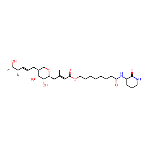 | SMILES | C[C@H](/C=C/C[C@H]1CO[C@H]([C@@H]([C@@H]1O)O)C/C(=C/C(=O)OCCCCCCCC(=O)NC2CCCNC2=O)/C)[C@H](C)O |