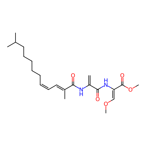 | SMILES | CC(C)CCCCC/C=C\C=C(/C)\C(=O)NC(=C)C(=O)N/C(=C\OC)/C(=O)OC |