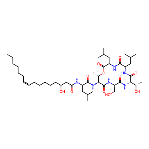 | SMILES | CCCCCC/C=C\CCCCCC(CC(=O)NC(CC(C)C)C(=O)N[C@H]1[C@@H](OC(=O)C(NC(=O)C(NC(=O)[C@@H](NC(=O)[C@H](NC1=O)CO)[C@H](C)O)CC(C)C)CC(C)C)C)O |