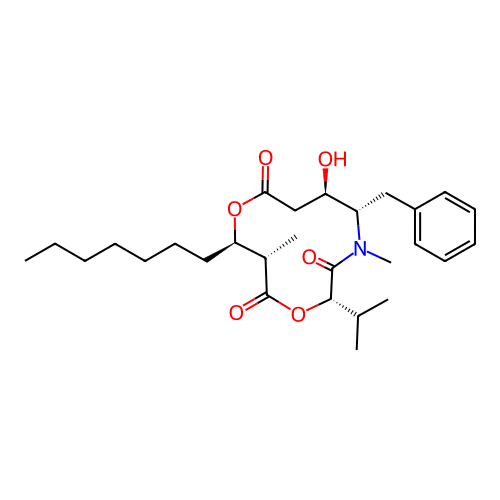 | SMILES | CCCCCCC[C@@H]1[C@@H](C(=O)O[C@H](C(=O)N([C@H]([C@@H](CC(=O)O1)O)CC2=CC=CC=C2)C)C(C)C)C |