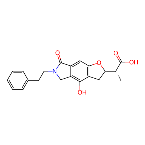 | InChI | InChI=1S/C21H21NO5/c1-12(21(25)26)17-10-15-18(27-17)9-14-16(19(15)23)11-22(20(14)24)8-7-13-5-3-2-4-6-13/h2-6,9,12,17,23H,7-8,10-11H2,1H3,(H,25,26)/t12-,17?/m1/s1 |