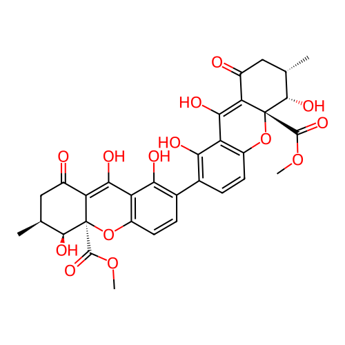 | InChI | InChI=1S/C32H30O14/c1-11-9-15(33)21-25(37)19-17(45-31(21,27(11)39)29(41)43-3)7-5-13(23(19)35)14-6-8-18-20(24(14)36)26(38)22-16(34)10-12(2)28(40)32(22,46-18)30(42)44-4/h5-8,11-12,27-28,35-40H,9-10H2,1-4H3/t11-,12-,27-,28-,31+,32+/m0/s1 |