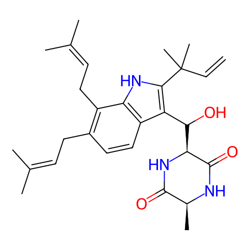 | SMILES | C[C@H]1C(=O)N[C@H](C(=O)N1)C(C2=C(NC3=C2C=CC(=C3CC=C(C)C)CC=C(C)C)C(C)(C)C=C)O |