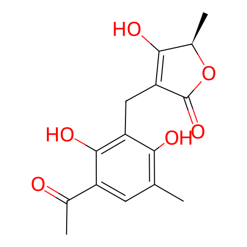 | SMILES | C[C@@H]1C(=C(C(=O)O1)CC2=C(C(=CC(=C2O)C)C(=O)C)O)O |