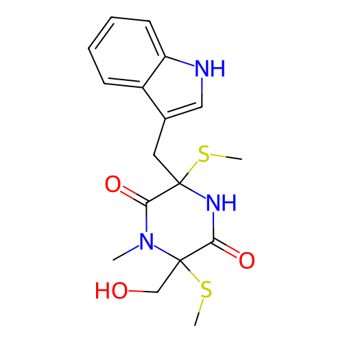 | SMILES | CN1C(=O)C(NC(=O)C1(CO)SC)(CC2=CNC3=CC=CC=C32)SC |