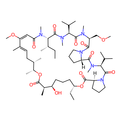 | SMILES | CC[C@@H]1CCC[C@H]([C@H](C(=O)O[C@@H]([C@H](CC=C(C(=CC(=O)N([C@H](C(=O)N([C@H](C(=O)N([C@H](C(=O)N2CCC[C@H]2C(=O)N([C@H](C(=O)N3CCC[C@H]3C(=O)O1)C(C)C)C)COC)C)C(C)C)C)[C@@H](C)CC)C)OC)C)C)C)C)O |