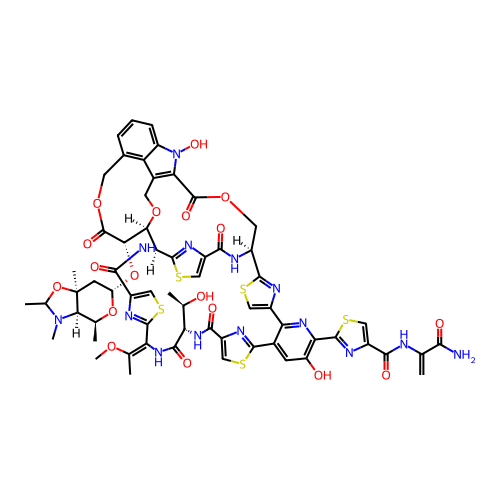 | SMILES | C[C@H]1[C@@H]2[C@](C[C@@H](O1)O[C@H]3[C@@H]4[C@H]5C6=NC(=CS6)C(=O)N[C@@H](COC(=O)C7=C(CO4)C8=C(COC3=O)C=CC=C8N7O)C9=NC(=CS9)C1=NC(=C(C=C1C1=NC(=CS1)C(=O)N[C@H](C(=O)N/C(=C(\C)/OC)/C1=NC(=CS1)C(=O)N5)[C@@H](C)O)O)C1=NC(=CS1)C(=O)NC(=C)C(=O)N)(OC(N2C)C)C |