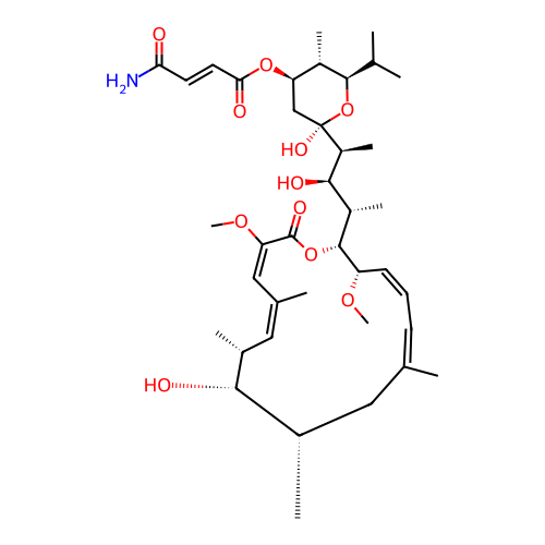 | SMILES | C[C@H]1C/C(=C\C=C/[C@@H]([C@H](OC(=O)/C(=C\C(=C/[C@H]([C@H]1O)C)\C)/OC)[C@@H](C)[C@H]([C@H](C)[C@]2(C[C@H]([C@@H]([C@H](O2)C(C)C)C)OC(=O)/C=C/C(=O)N)O)O)OC)/C |