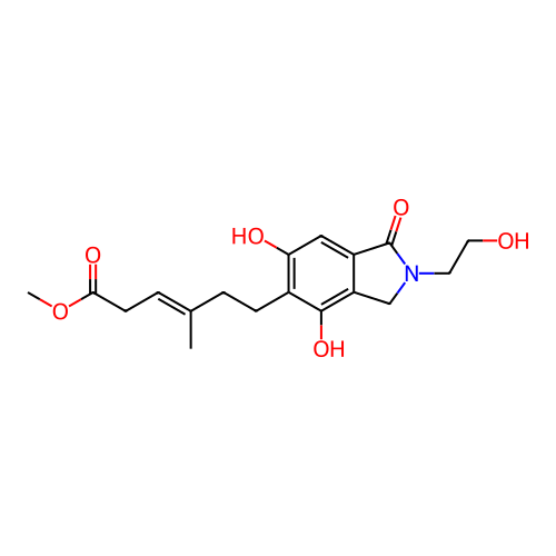 | SMILES | C/C(=C\CC(=O)OC)/CCC1=C(C=C2C(=C1O)CN(C2=O)CCO)O |