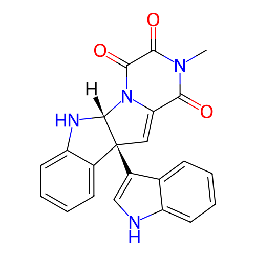 | SMILES | CN1C(=O)C2=C[C@]3([C@@H](N2C(=O)C1=O)NC4=CC=CC=C43)C5=CNC6=CC=CC=C65 |