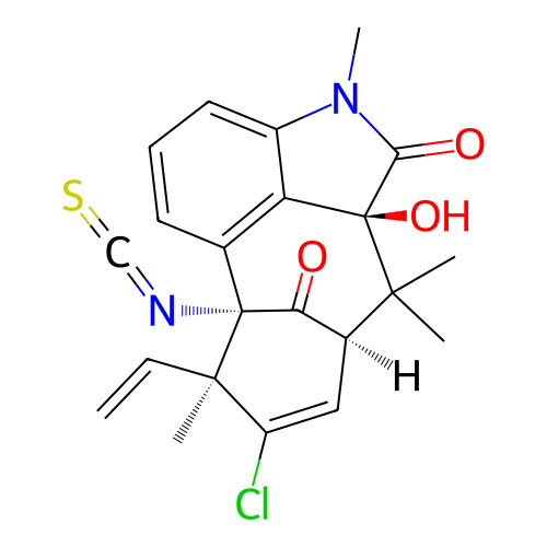 | InChI | InChI=1S/C22H21ClN2O3S/c1-6-20(4)15(23)10-13-17(26)21(20,24-11-29)12-8-7-9-14-16(12)22(28,19(13,2)3)18(27)25(14)5/h6-10,13,28H,1H2,2-5H3/t13-,20+,21+,22-/m0/s1 |