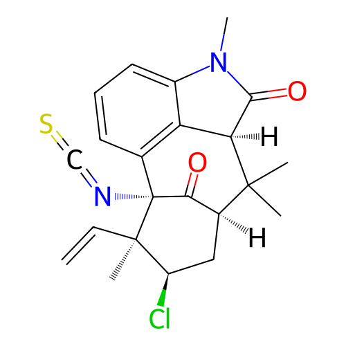 | InChI | InChI=1S/C22H23ClN2O2S/c1-6-21(4)15(23)10-13-18(26)22(21,24-11-28)12-8-7-9-14-16(12)17(20(13,2)3)19(27)25(14)5/h6-9,13,15,17H,1,10H2,2-5H3/t13-,15+,17-,21+,22+/m0/s1 |