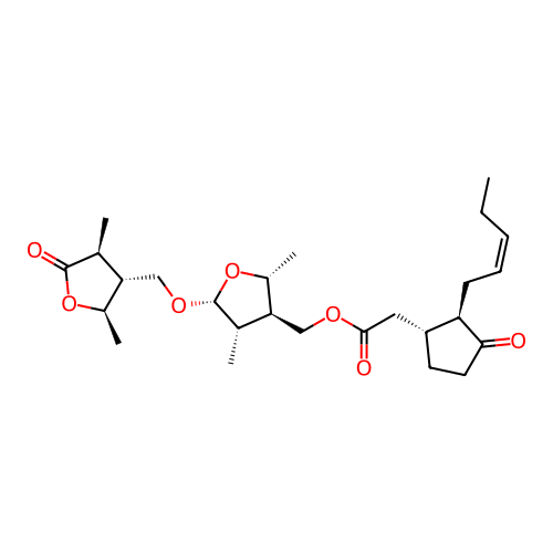 | SMILES | CC/C=C\C[C@@H]1[C@H](CCC1=O)CC(=O)OC[C@H]2[C@@H]([C@@H](O[C@@H]2C)OC[C@H]3[C@@H](C(=O)O[C@@H]3C)C)C |