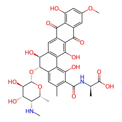 | SMILES | C[C@@H]1[C@@H]([C@@H]([C@H]([C@@H](O1)O[C@@H]2[C@H](C3=C(C4=C(C(=C(C=C24)C)C(=O)N[C@H](C)C(=O)O)O)C(=C5C(=C3)C(=O)C6=C(C=C(C=C6C5=O)OC)O)O)O)O)O)NC |