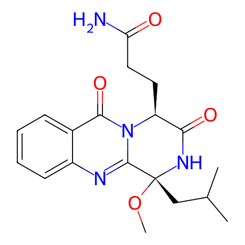 | SMILES | CC(C)C[C@]1(C2=NC3=CC=CC=C3C(=O)N2[C@H](C(=O)N1)CCC(=O)N)OC |