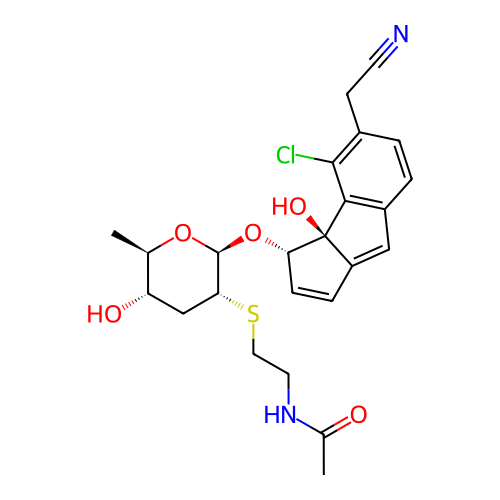 | SMILES | C[C@@H]1[C@H](C[C@H]([C@@H](O1)O[C@H]2C=CC3=CC4=C([C@@]23O)C(=C(C=C4)CC#N)Cl)SCCNC(=O)C)O |