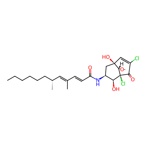 | SMILES | CCCCCC[C@@H](C)/C=C(\C)/C=C/C(=O)N[C@H]1C[C@@]2(C=C(C(=O)[C@]([C@H]1O)([C@H]2OC)Cl)Cl)O |