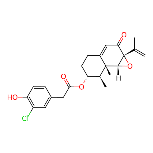| SMILES | C[C@H]1[C@@H](CCC2=CC(=O)[C@]3([C@@H]([C@]12C)O3)C(=C)C)OC(=O)CC4=CC(=C(C=C4)O)Cl |