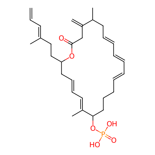 | SMILES | CC1CC=CC=CC=CCCCC(C(=CC=CCC(OC(=O)CC1=C)CCC(=CC=C)C)C)OP(=O)(O)O |