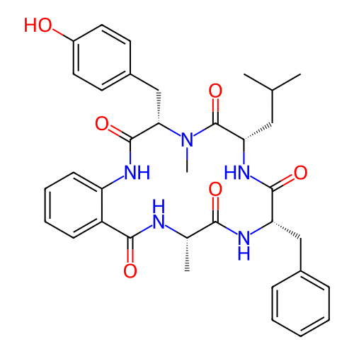 | SMILES | C[C@H]1C(=O)N[C@H](C(=O)N[C@H](C(=O)N([C@H](C(=O)NC2=CC=CC=C2C(=O)N1)CC3=CC=C(C=C3)O)C)CC(C)C)CC4=CC=CC=C4 |