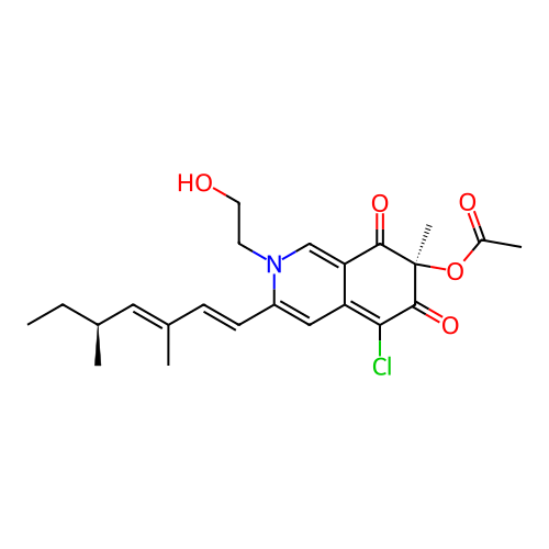 | SMILES | CC[C@H](C)/C=C(\C)/C=C/C1=CC2=C(C(=O)[C@](C(=O)C2=CN1CCO)(C)OC(=O)C)Cl |