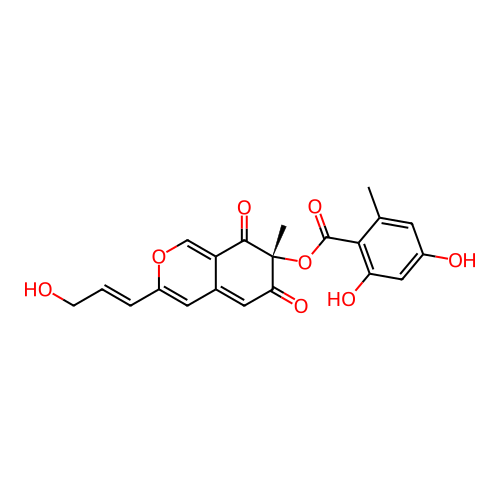 | InChI | InChI=1S/C21H18O8/c1-11-6-13(23)9-16(24)18(11)20(27)29-21(2)17(25)8-12-7-14(4-3-5-22)28-10-15(12)19(21)26/h3-4,6-10,22-24H,5H2,1-2H3/b4-3+/t21-/m1/s1 |