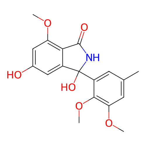 | InChI | InChI=1S/C18H19NO6/c1-9-5-12(16(25-4)14(6-9)24-3)18(22)11-7-10(20)8-13(23-2)15(11)17(21)19-18/h5-8,20,22H,1-4H3,(H,19,21) |