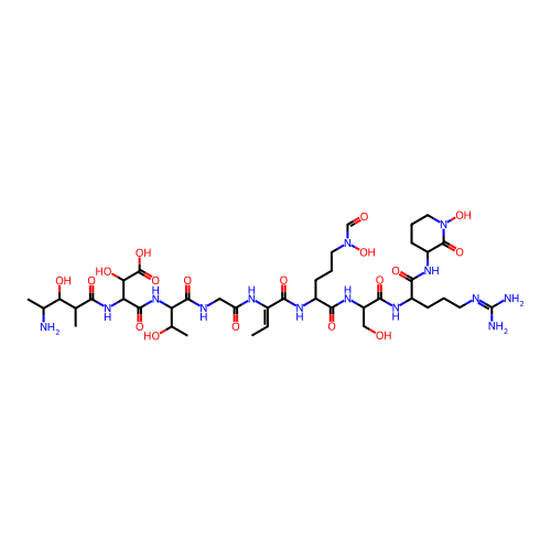 | SMILES | C/C=C(/C(=O)NC(CCCN(C=O)O)C(=O)NC(CO)C(=O)NC(CCCN=C(N)N)C(=O)NC1CCCN(C1=O)O)\NC(=O)CNC(=O)C(C(C)O)NC(=O)C(C(C(=O)O)O)NC(=O)C(C)C(C(C)N)O |
