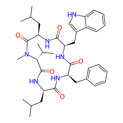| SMILES | CC(C)C[C@@H]1C(=O)N[C@@H](C(=O)N[C@@H](C(=O)N[C@@H](C(=O)N([C@@H](C(=O)N1)C(C)C)C)CC(C)C)CC2=CNC3=CC=CC=C32)CC4=CC=CC=C4 |