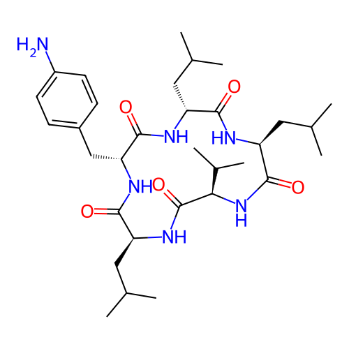 | SMILES | CC(C)C[C@@H]1C(=O)N[C@H](C(=O)N[C@@H](C(=O)N[C@H](C(=O)N[C@@H](C(=O)N1)CC2=CC=C(C=C2)N)CC(C)C)C(C)C)CC(C)C |