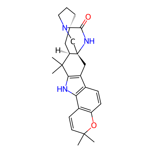 | InChI | InChI=1S/C26H31N3O2/c1-23(2)10-8-16-18(31-23)7-6-15-17-12-25-14-29-11-5-9-26(29,22(30)28-25)13-19(25)24(3,4)21(17)27-20(15)16/h6-8,10,19,27H,5,9,11-14H2,1-4H3,(H,28,30)/t19-,25+,26-/m1/s1 |