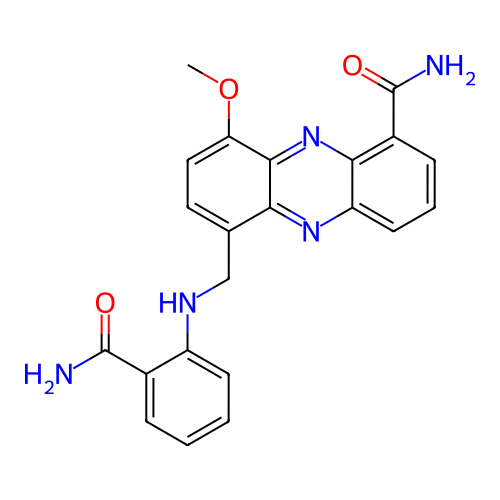 | SMILES | COC1=CC=C(C2=NC3=CC=CC(=C3N=C12)C(=O)N)CNC4=CC=CC=C4C(=O)N |