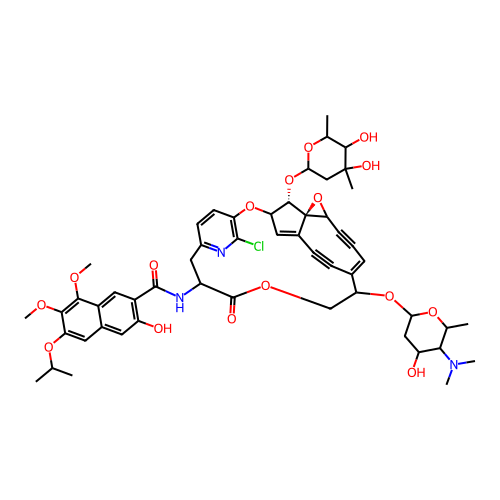 | SMILES | COC1=C(OC)C2=CC(C(=O)NC3CC4=NC(Cl)=C(C=C4)OC4C=C5C#C/C(=C\C#CC6O[C@]56[C@H]4OC4CC(C)(O)C(O)C(C)O4)C(OC4CC(O)C(N(C)C)C(C)O4)COC3=O)=C(O)C=C2C=C1OC(C)C |