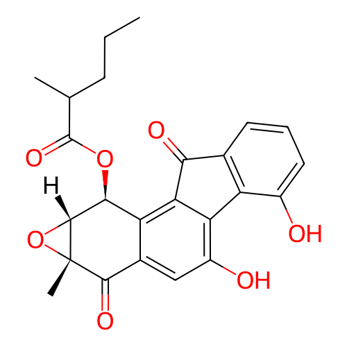| SMILES | CCCC(C)C(=O)O[C@@H]1[C@@H]2[C@@](O2)(C(=O)C3=CC(=C4C5=C(C=CC=C5O)C(=O)C4=C13)O)C |