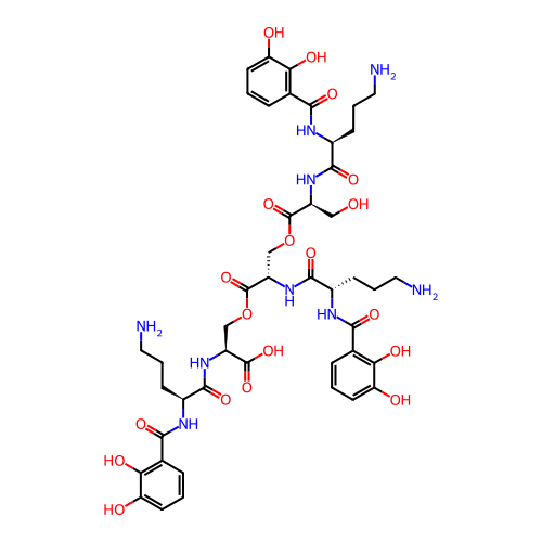 | SMILES | C1=CC(=C(C(=C1)O)O)C(=O)N[C@@H](CCCN)C(=O)N[C@@H](CO)C(=O)OC[C@@H](C(=O)OC[C@@H](C(=O)O)NC(=O)[C@H](CCCN)NC(=O)C2=C(C(=CC=C2)O)O)NC(=O)[C@H](CCCN)NC(=O)C3=C(C(=CC=C3)O)O |