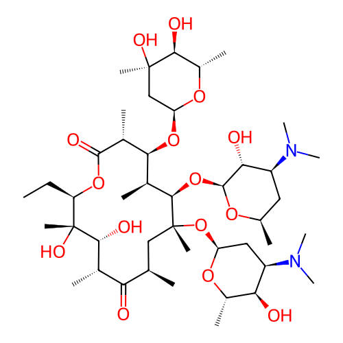 | SMILES | CC[C@@H]1[C@@]([C@@H]([C@H](C(=O)[C@@H](C[C@@]([C@@H]([C@H]([C@@H]([C@H](C(=O)O1)C)O[C@H]2C[C@@]([C@H]([C@@H](O2)C)O)(C)O)C)O[C@H]3[C@@H]([C@H](C[C@H](O3)C)N(C)C)O)(C)O[C@H]4C[C@H]([C@H]([C@@H](O4)C)O)N(C)C)C)C)O)(C)O |