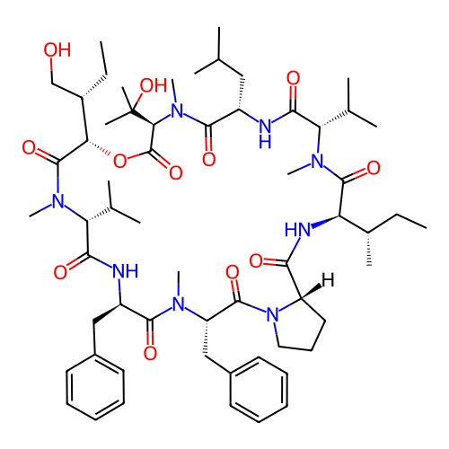 | SMILES | CC[C@H](C)[C@@H]1C(=O)N([C@H](C(=O)N[C@H](C(=O)N([C@@H](C(=O)O[C@H](C(=O)N([C@@H](C(=O)N[C@@H](C(=O)N([C@H](C(=O)N2CCC[C@H]2C(=O)N1)CC3=CC=CC=C3)C)CC4=CC=CC=C4)C(C)C)C)[C@@H](CC)CO)C(C)(C)O)C)CC(C)C)C(C)C)C |
